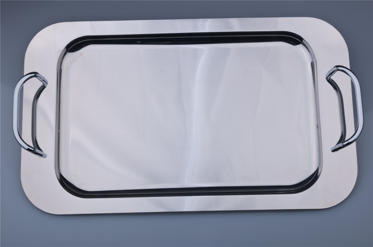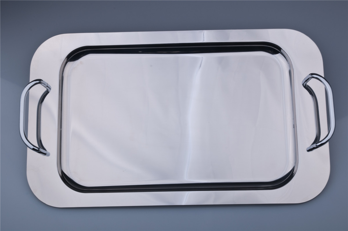 Bandeja de servir cuadrada con plata u oro plateado manijas