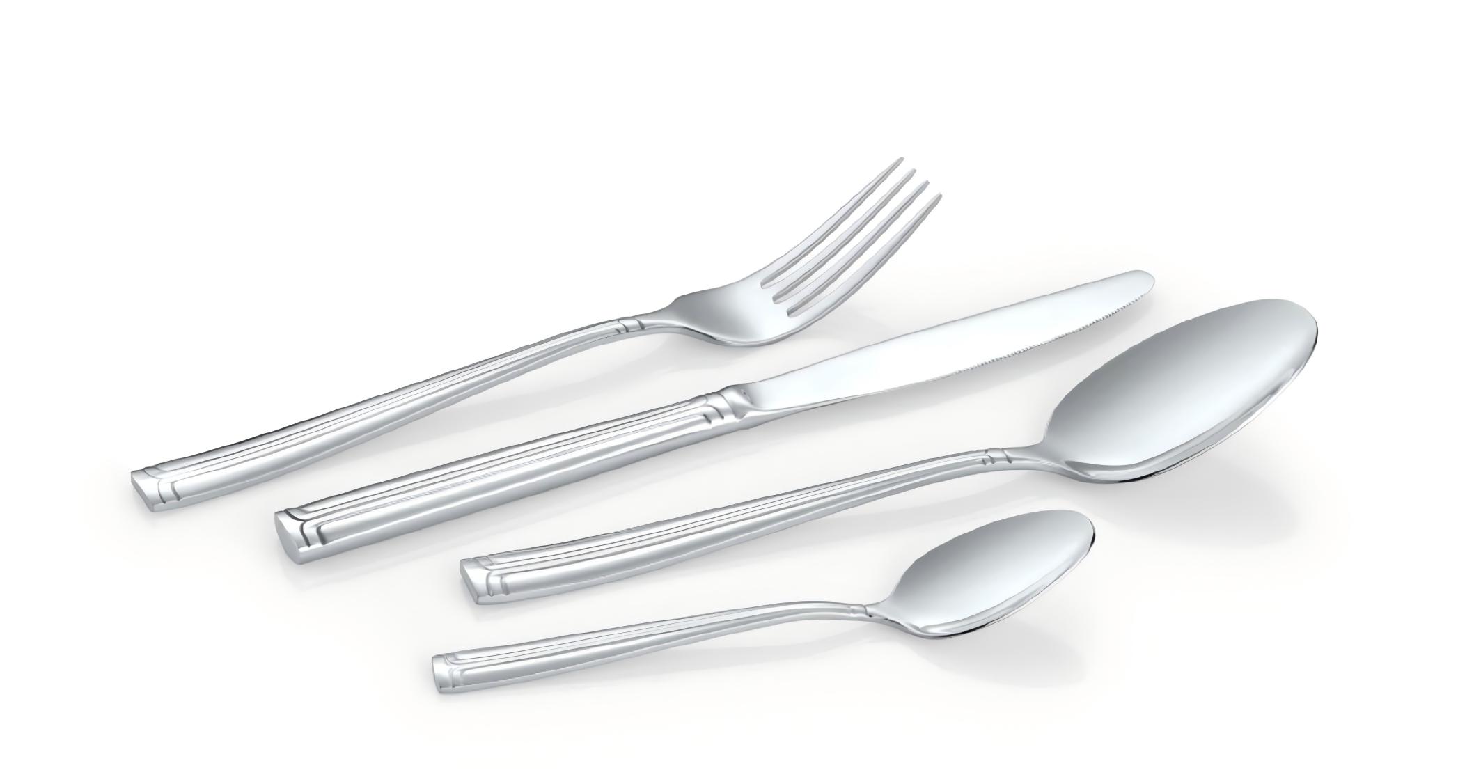 The fantastic flatware set 065 includes four basic pieces for casual dinners, made of 18/8 stainless steel material.